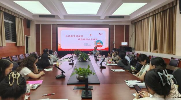 在教育家精神培训环节,谢主任围绕 “躬耕教坛、强国有我” 的核心内涵,结合优秀教师成长案例,阐释了新时代中职教师应具备的 “仁爱之心”"“工匠之心 ”“创新之心”。他鼓励新教师以教育家为榜样,将个人成长与学校发展、职业教育事业进步紧密结合,在教书育人中实现人生价值。