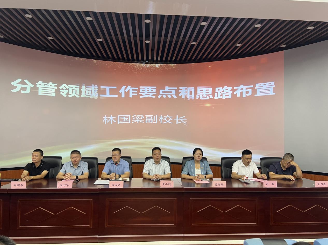 8月21日,校领导班子率先召开行政办公会议,坚持“提早谋划、系统部署、压实责任、确保安全”的原则,全面复盘上学期工作,系统规划新学期党建、教学、科研、安全、德育等重点任务。会议强调,要以争创国家级“双优校”为目标,深化教育教学改革,优化管理服务,推动学校高质量发展。